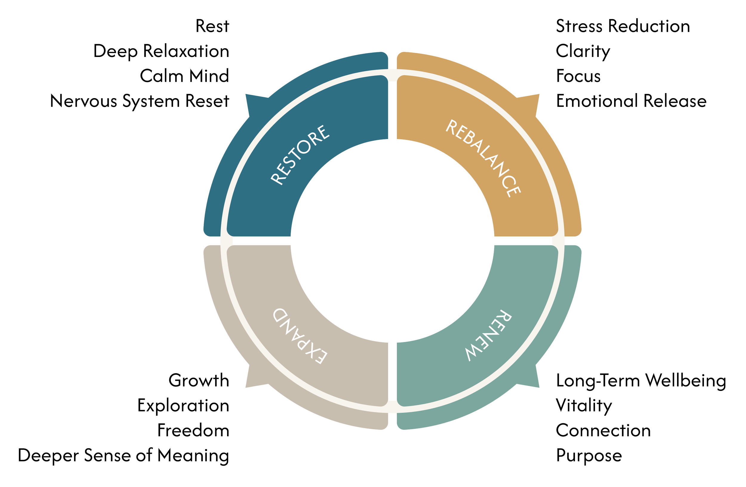 Whether you’re looking to move your body with intention, deepen a specific area of personal growth, or simply feel like yourself again, each retreat follows a purposeful arc designed to support expansion and a renewed connection to self.